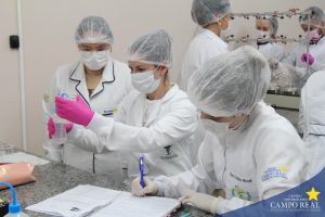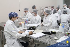 A turma do 6º período de Farmácia participou de uma aula prática na disciplina de Farmacotécnica, focada na manipulação de xaropes. A instrução foi conduzida pela professora Fernanda Luize Faria Roth, durante a qual os alunos puderam desenvolver xaropes de guaco e dietéticos.