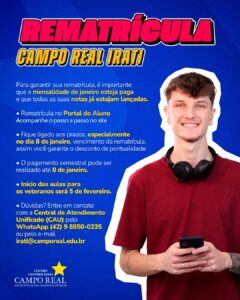 O Centro Universitário Campo Real tem uma ótima novidade para toda a comunidade de Irati e região! O professor Edson, reitor da instituição, anunciou que...